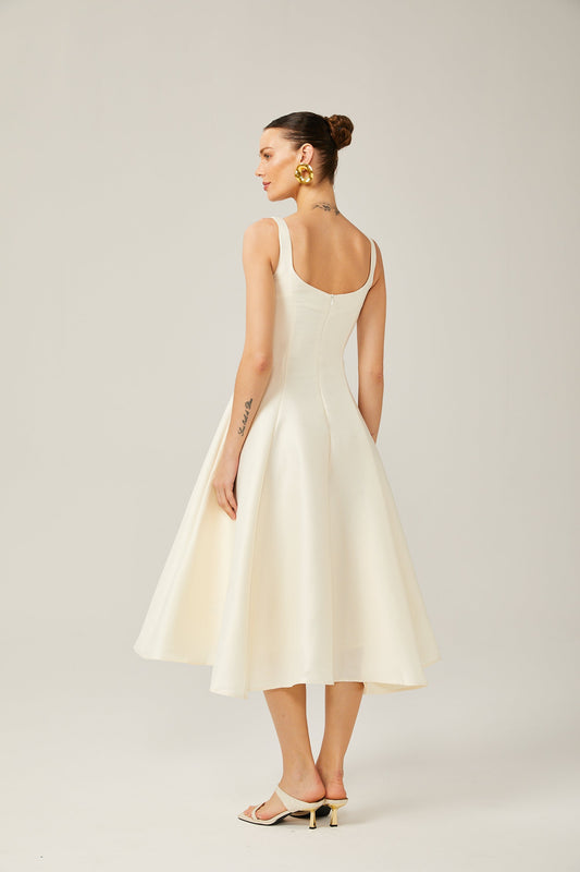 45% İndirimLeonor Saten Bedene Oturan Kloş Midi Elbise