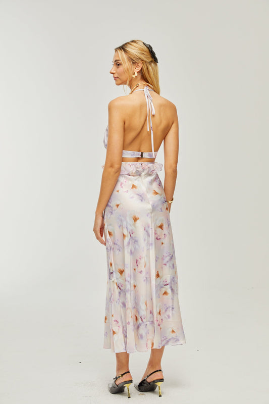 31% İndirimAlira Çiçek Desenli Bağcıklı Midi Elbise