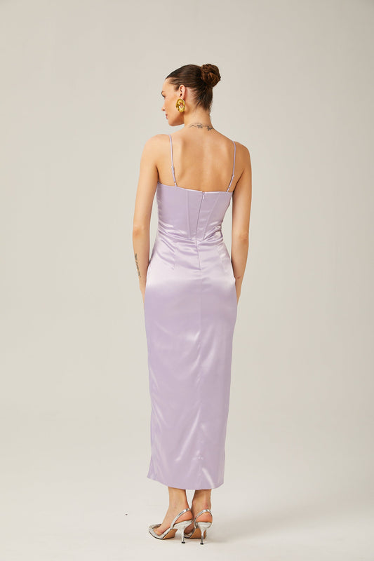 33% İndirimAliénor Mor Saten Yırtılmamaçlı Midi Elbise