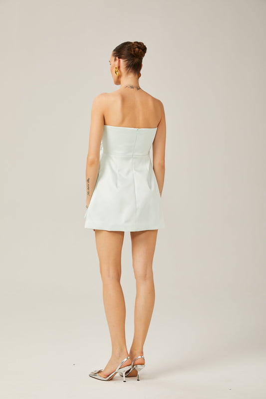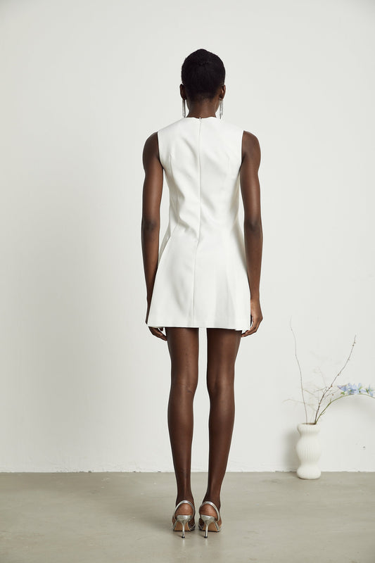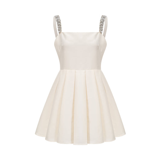 18% İndirimMireille Beyaz Büstiyer Pileli Mini Elbise