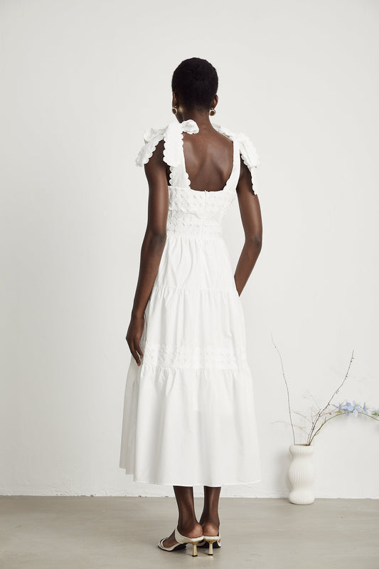 22% İndirimLorina Beyaz Fırfırlı Midi Elbise