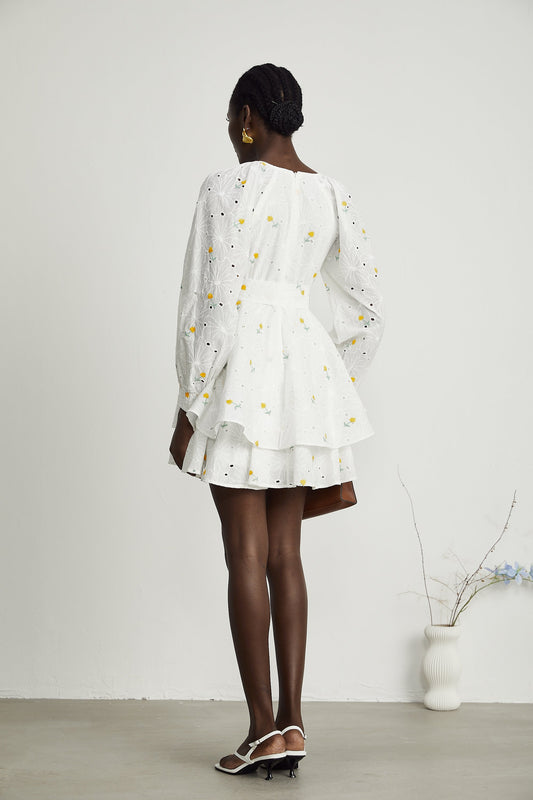 23% İndirimNaia Beyaz Çiçek İşlemeli Mini Elbise