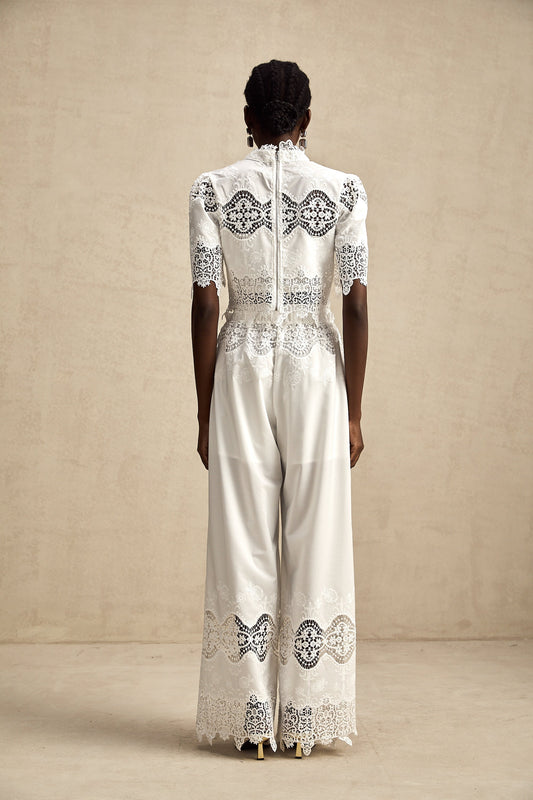 Raphaëlle Beyaz İşlemeli Ceket Ve Pantolon Uyumlu Takım
