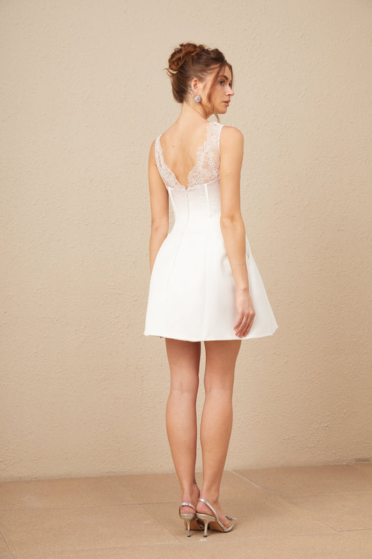 Marion Dantel Süslemeli Büstiyer Mini Elbise Beyaz