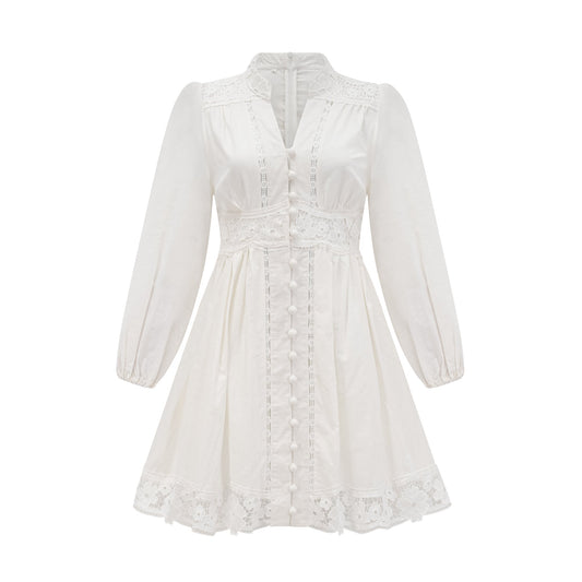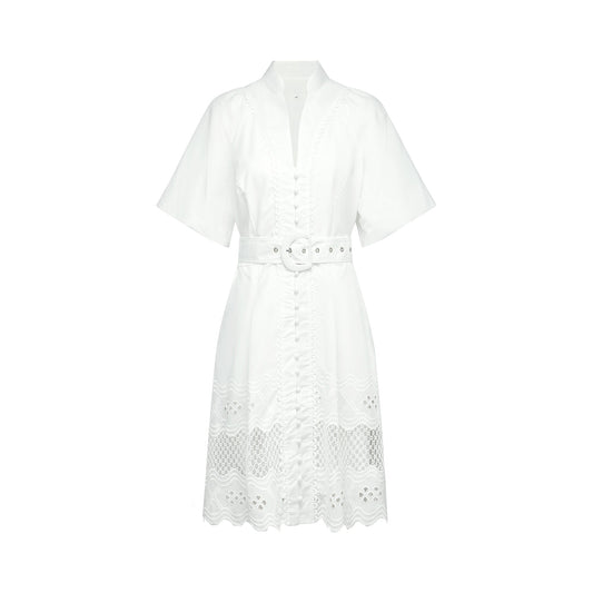 18% İndirimOcéane Beyaz Dantel Panelli Mini Elbise