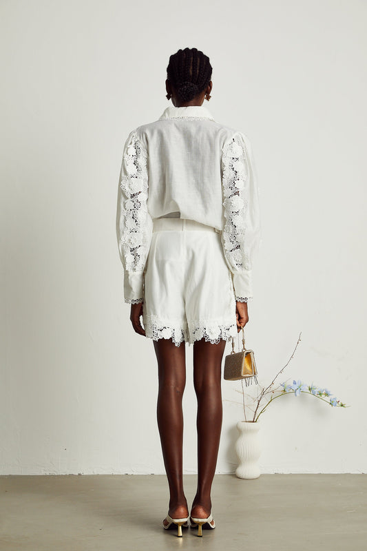 Rosalie Dantel Süslemeli İşlemeli Gömlek Ve Şort Eşleştirme Seti