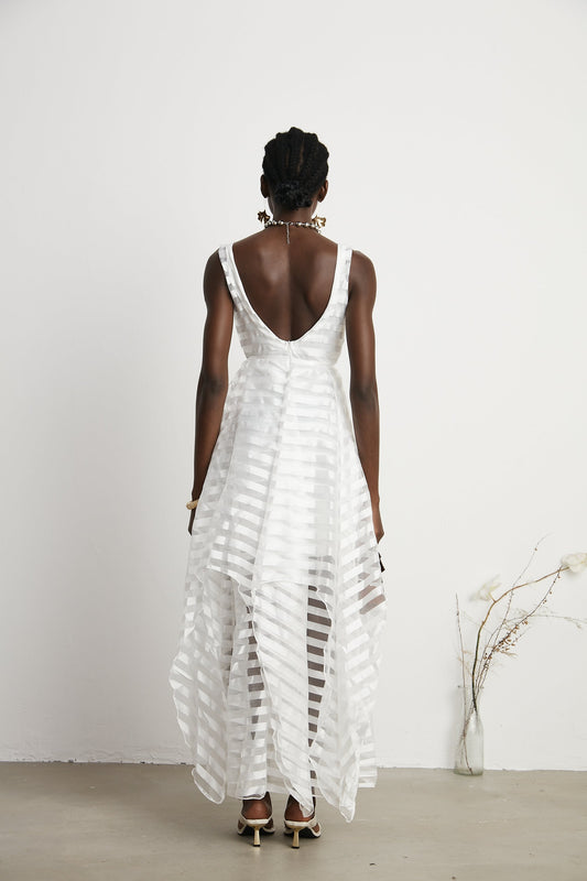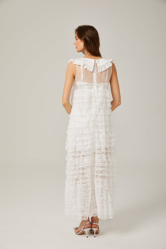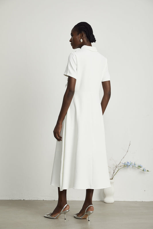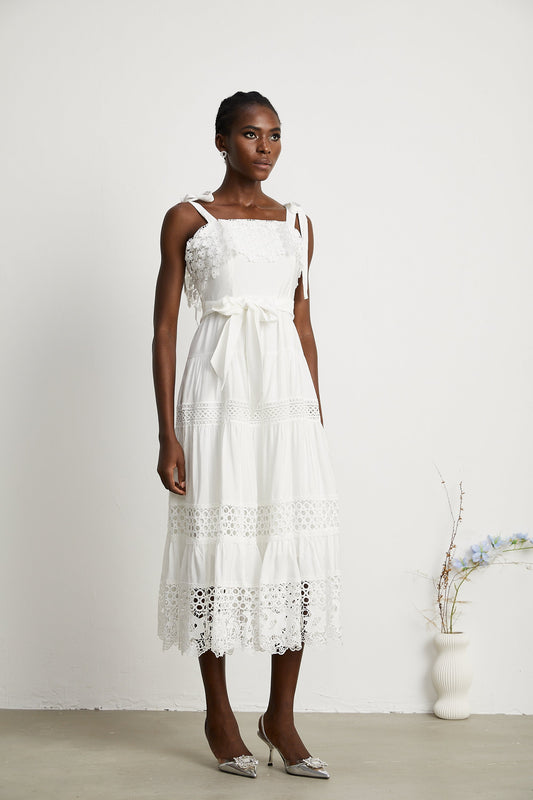 24% İndirimAlora Beyaz Dantel Şeritli Katlı Midi Elbise