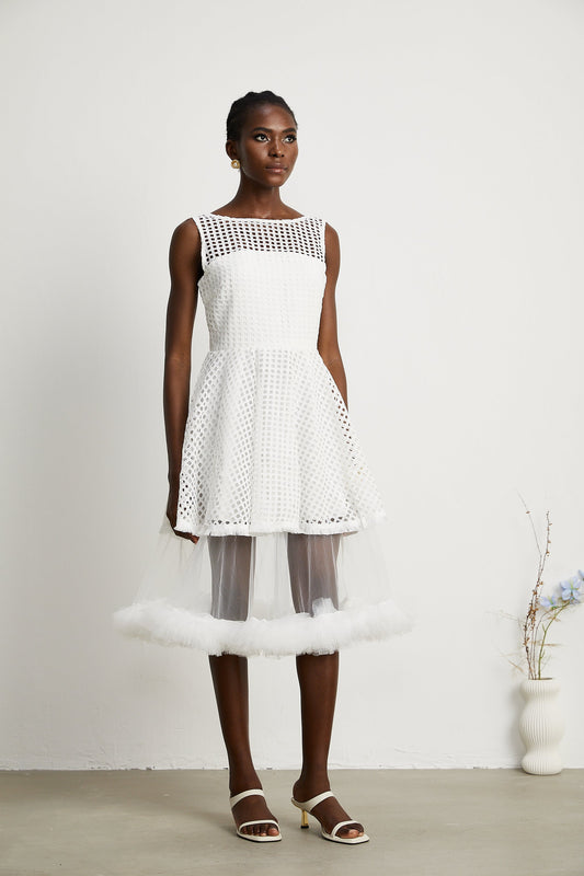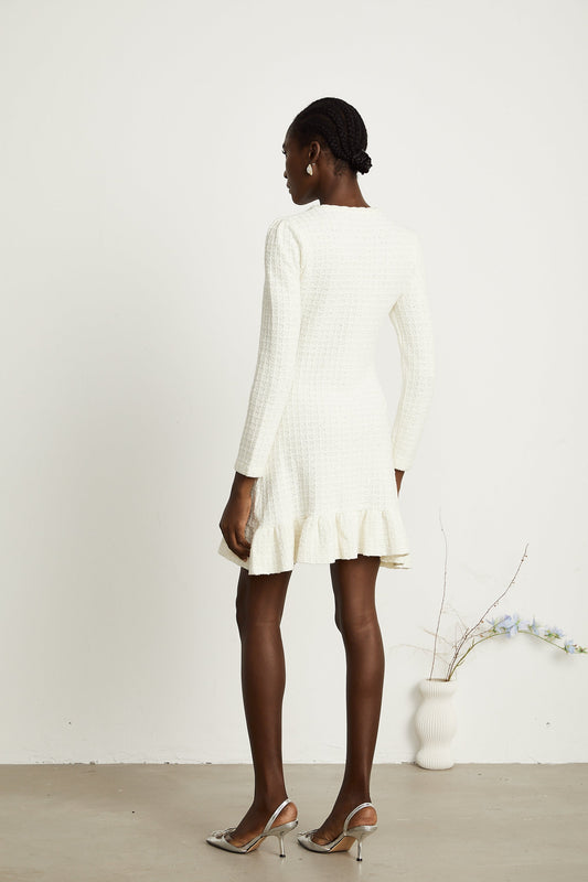 21% İndirimAliénor Beyaz Kloş Örgülü Mini Elbise