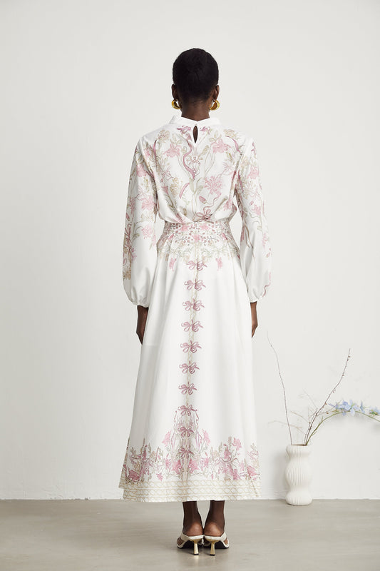 18% İndirimAdabella Beyaz Çiçekli Maksi Elbise
