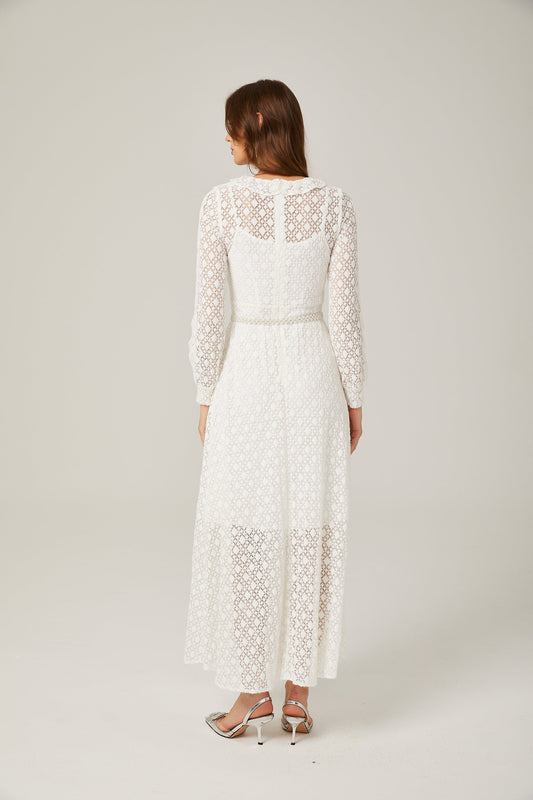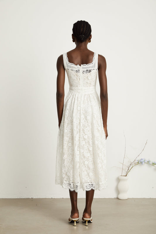 20% İndirimCalixte Beyaz Dantel İşlemeli Midi Elbise