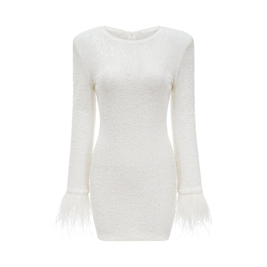 24% İndirimAurélie Beyaz Pul Payet Pilili Tüvit Mini Elbise