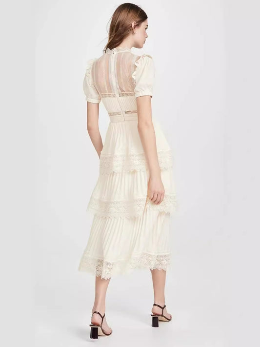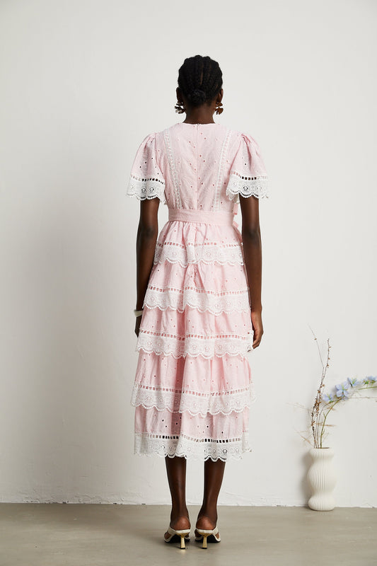 21% İndirimValérie Dantel Süslü Papyonlu Midi Elbise