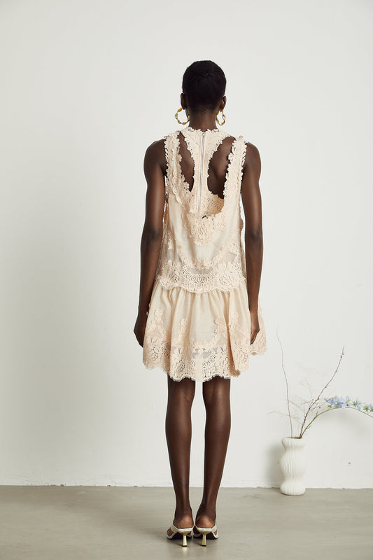 31% İndirimBrielle Beyaz Dantel Kolsuz Mini Elbise