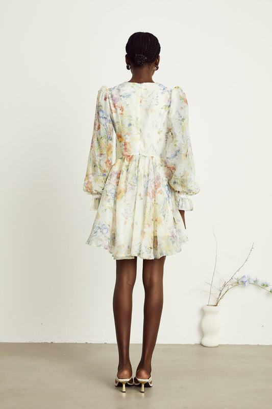 Éléonore Çiçek Desenli Dantel Detaylı Mini Elbise