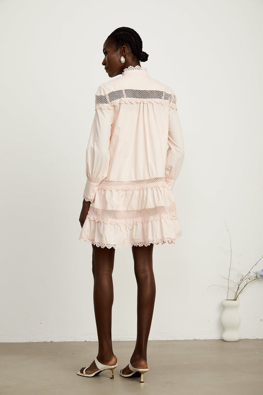17% İndirimEnora Pembe Dantel Detaylı Mini Elbise