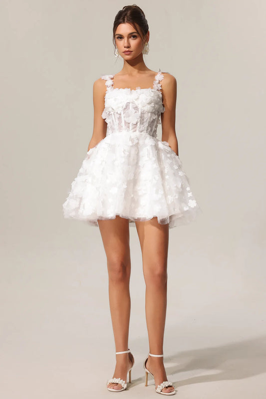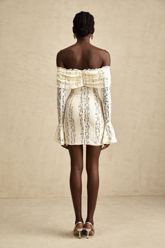 26% İndirimÉmilie Beyaz Dantelli Omuzları Açık Mini Elbise