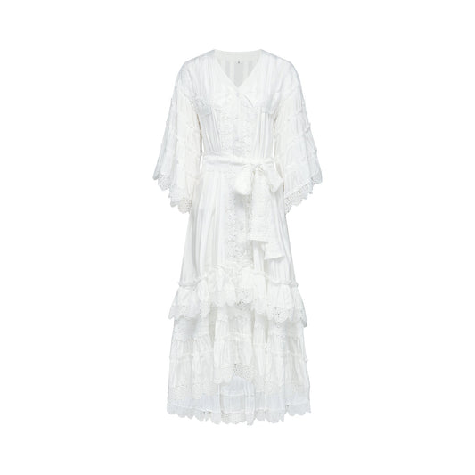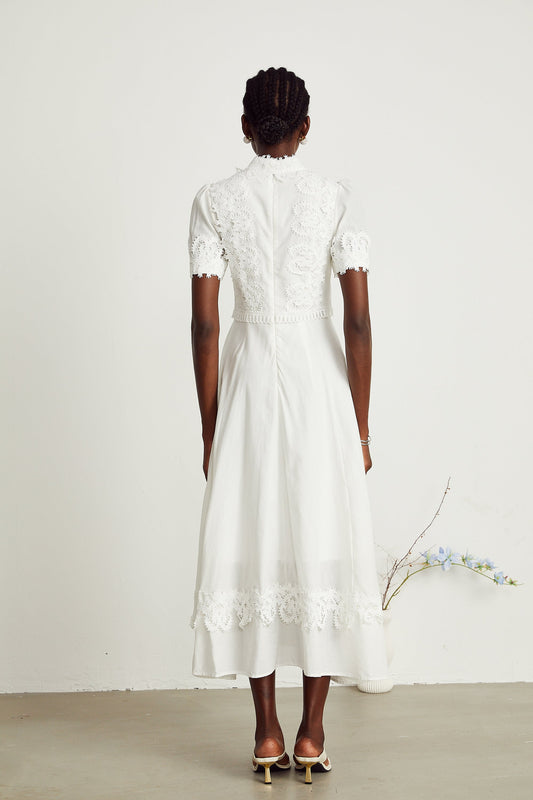 44% İndirimPatricia Beyaz Çiçekli Dantel Midi Elbise