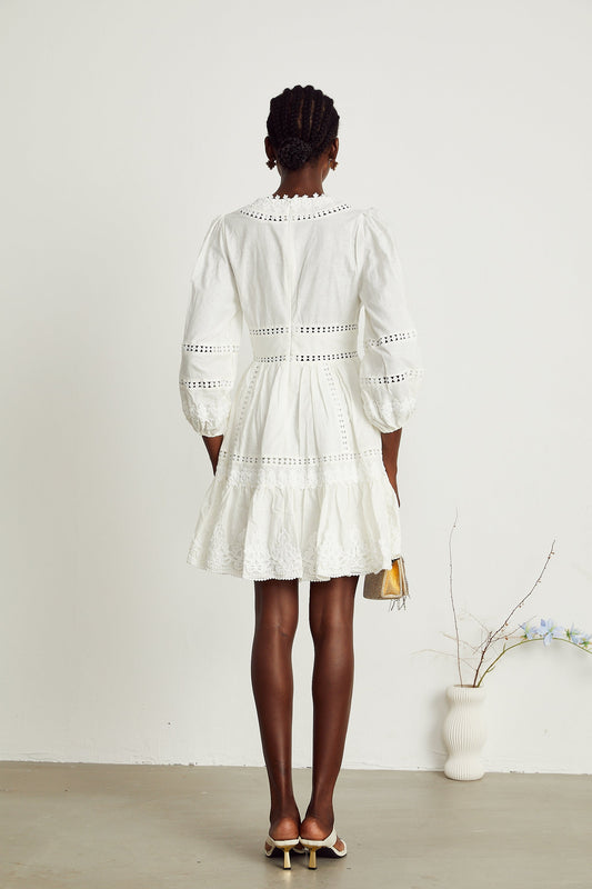 21% İndirimSadie Beyaz Güpür Dantel Süslemeli Mini Elbise