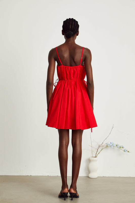 93% İndirimCamille Kırmızı Kapaklı Dantelli Midi Elbise