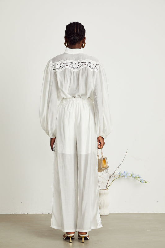 Yasmine Yarı Transparan Gömlek & Pantolon Kombin Takım