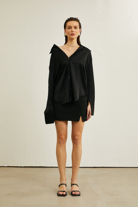 Vanessa Tül Panelli Yarı Transparan Gömlek Ve Etek Uyumlu Takım