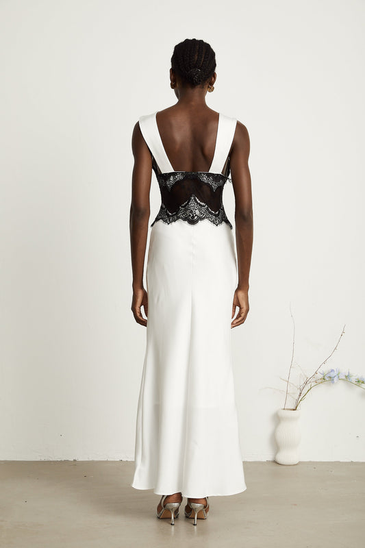 Éléonore Kontrast Renkli Dantel Detaylı Maxi Elbise