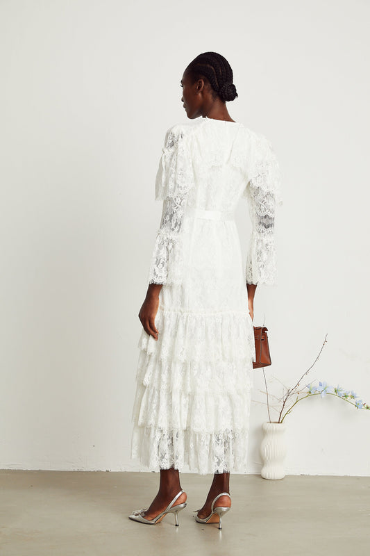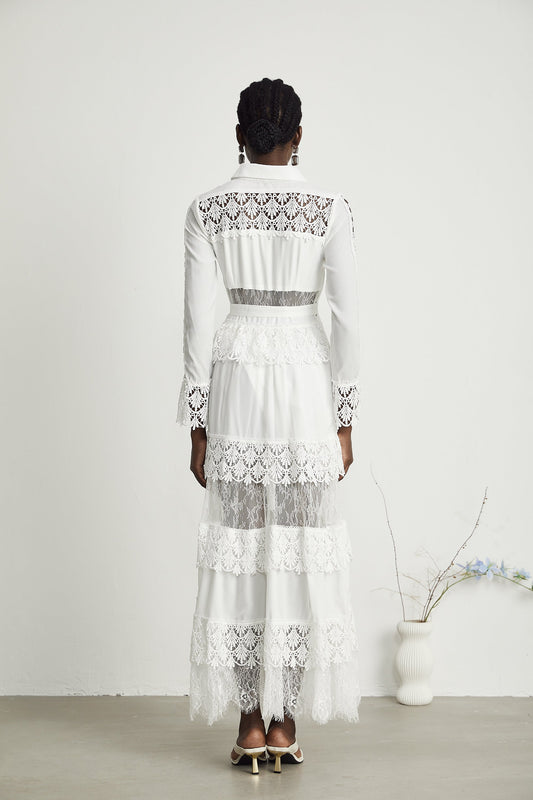 17% İndirimUliana Beyaz Dantel Kaplamalı Maxi Elbise