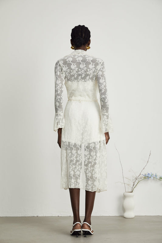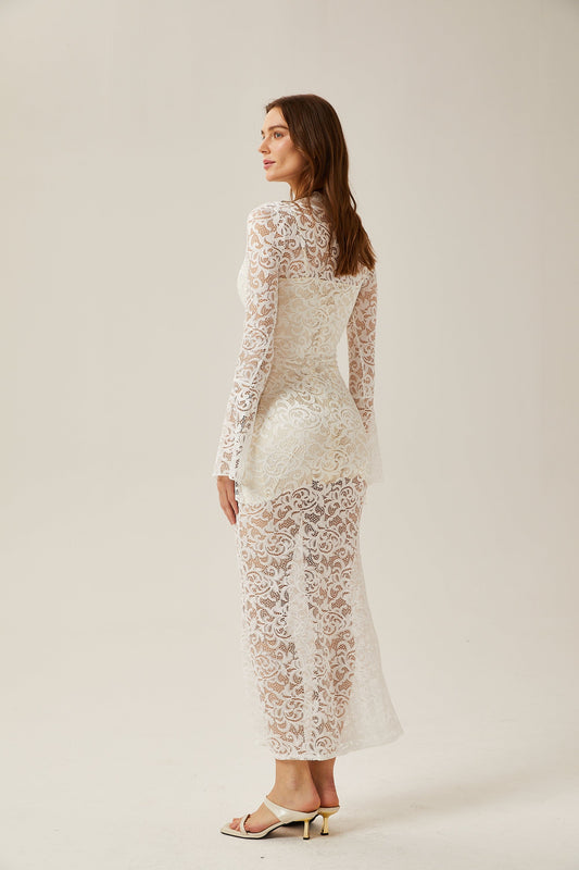 23% İndirimMartine Beyaz Dantel Transparan Midi Elbise