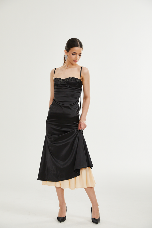 14% İndirimLarisa Dantel Süslü Saten Midi Elbise