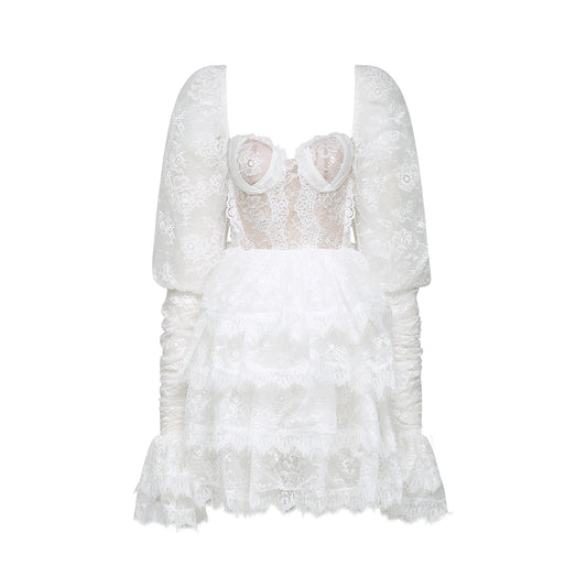 Marion Dantel Süslemeli Büstiyer Mini Elbise Beyaz