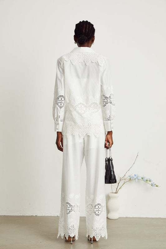 Manon Dantelli Gömlek & Yelek Üst & Pantolon Uyumlu Takım