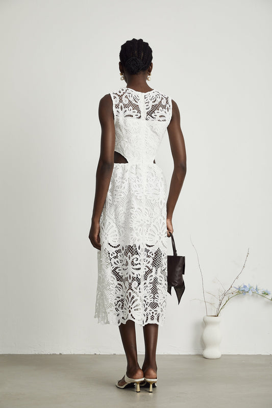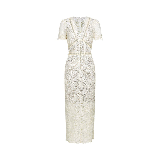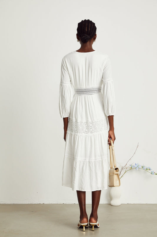 18% İndirimJeanne Beyaz Dantel Kesimli Midi Elbise