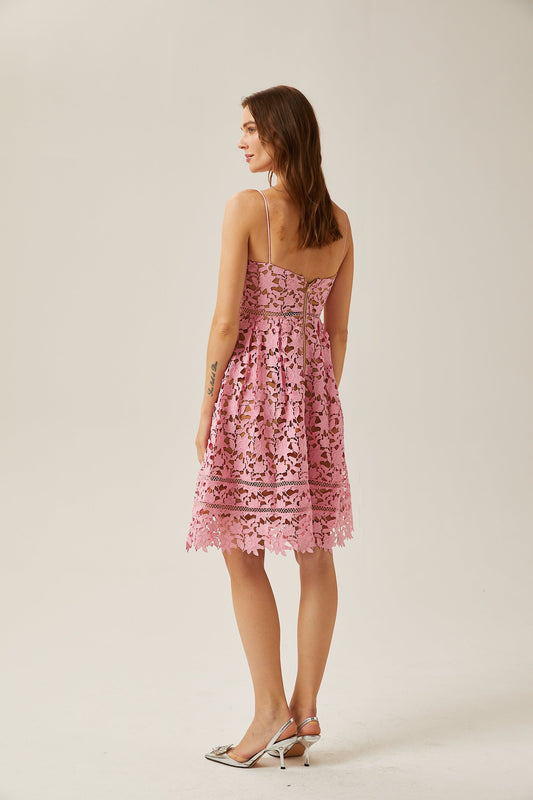 25% İndirimJocelyne Pembe Çiçekli Dantel Mini Elbise