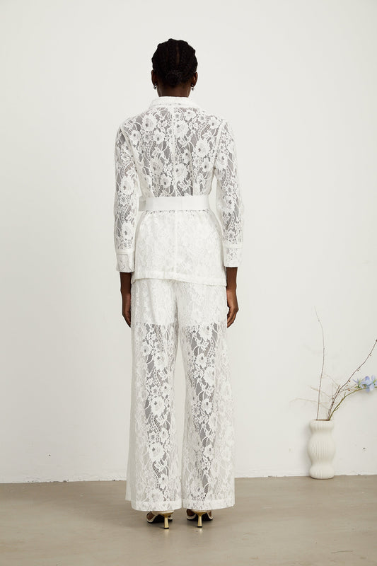 Chloé Kordonlu Dantel Blazer Ceket Ve Pantolon Eşleştirme Seti Beyaz