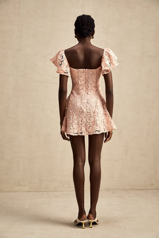 17% İndirimEsmée Fırfır Kollu Dantel Mini Elbise Pembe