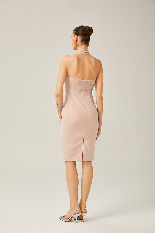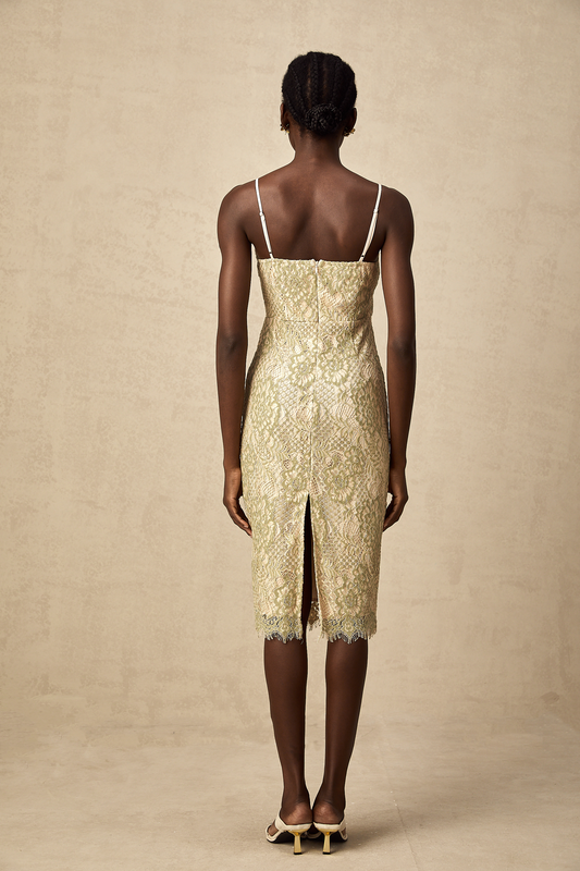 Géraldine File Dantelli Boyundan Bağlamalı Midi Elbise