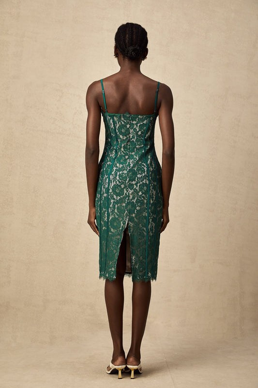 14% İndirimCéleste Yeşil Dantel Büstiyer Takma Midi Elbise