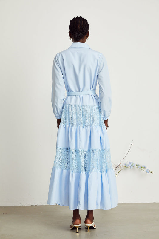 18% İndirimFanny Dantel Panelli Katlı Maxi Elbise