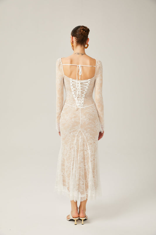 Delphine Dantel Panelli Omuzları Açık Korse Maksi Elbise