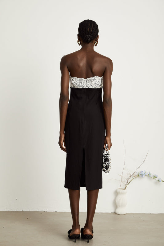 Delphine Dantel Şeritli Yarı Transparan Midi Elbise