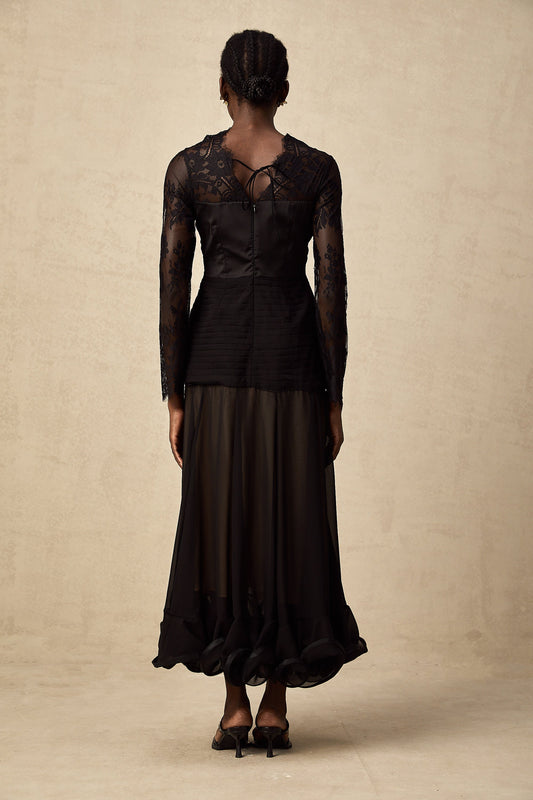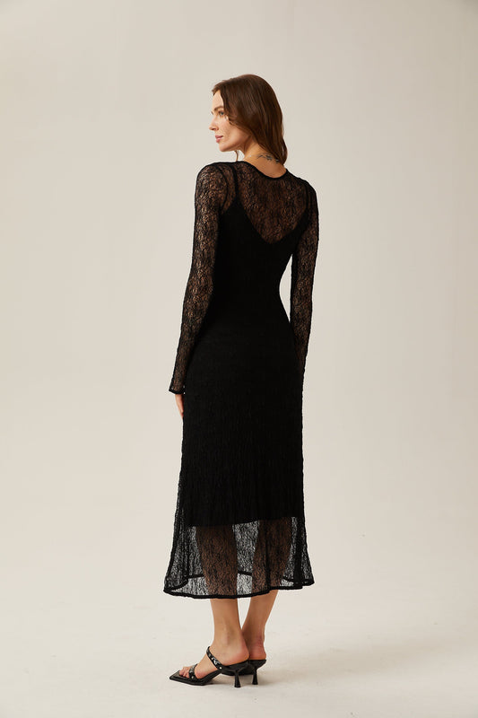 Adèleine Dantel Yarı Şeffaf Üst Ve Elbise Eşleştirme Seti