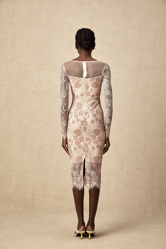 22% İndirimAnaïs Dantel Yarı Transparan Dalgalı Midi Elbise