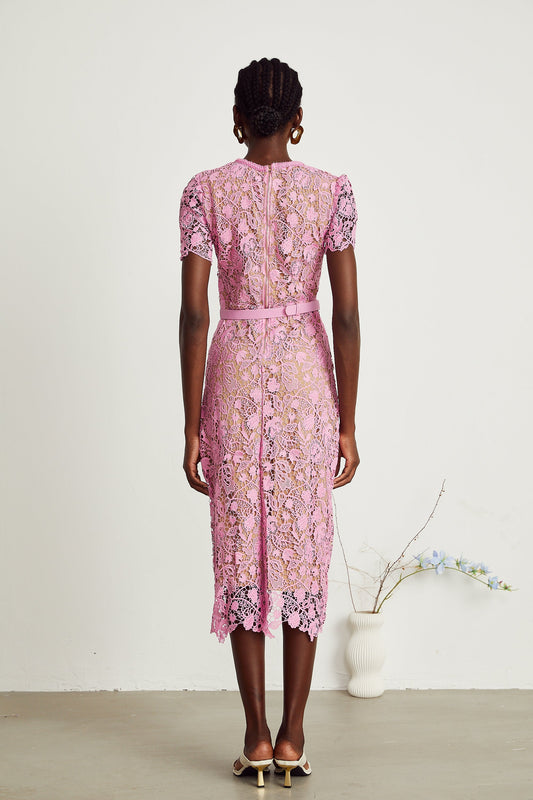 22% İndirimAnastasie Pembe Dantel Kaplama Midi Elbise