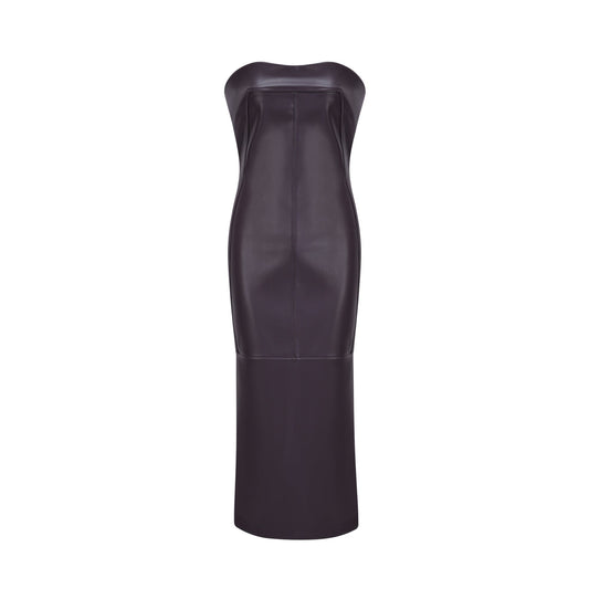 Angélique Siyah Dantel Panelli Suni Deri Maksi Elbise