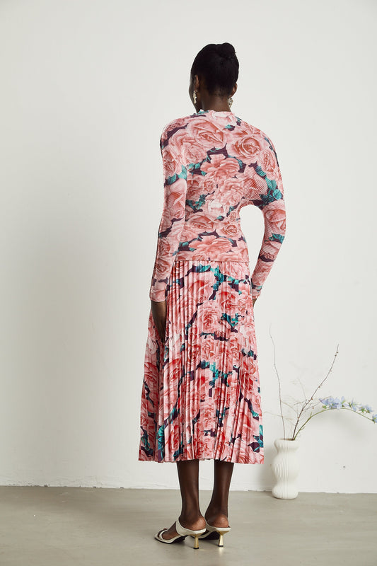 Émeline Çiçek Desenli Pileli Üst Ve Etek Eşleştirme Seti