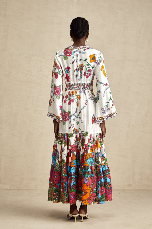 31% İndirimClarabelle İpek Kloş Buzgülü Panelli Elbise