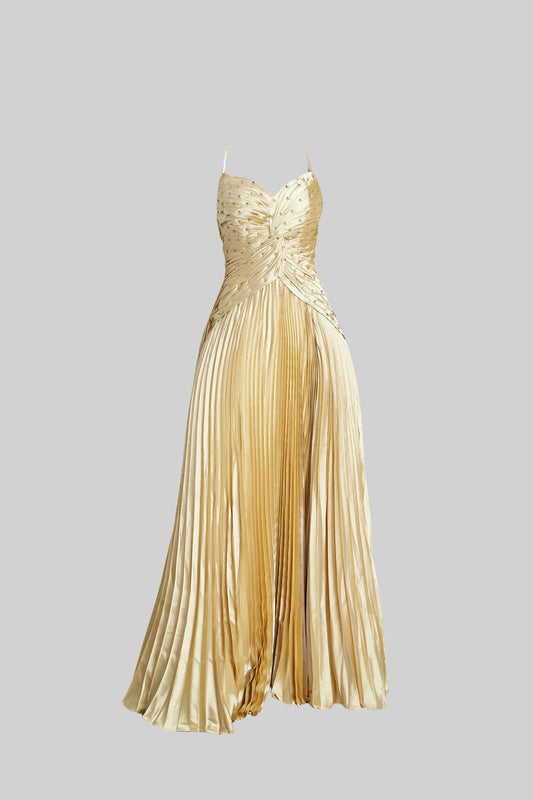 45% İndirimSırt Dantel Detaylı Cascade Elbise - Altın