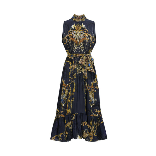 45% İndirimİpek Hermine Grafik Desenli Kolsuz Midi Elbise