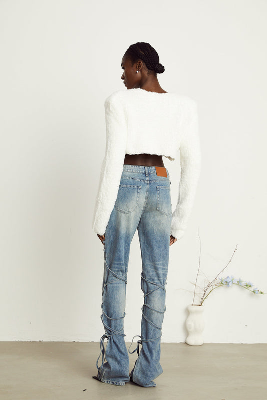 26% İndirimDaphné Beyaz Kabarık Örgü Kısa Hırka