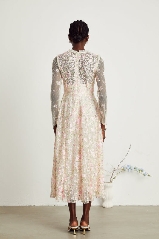 40% İndirimLucie Çiçek İşlemeli Tül Midi Elbise